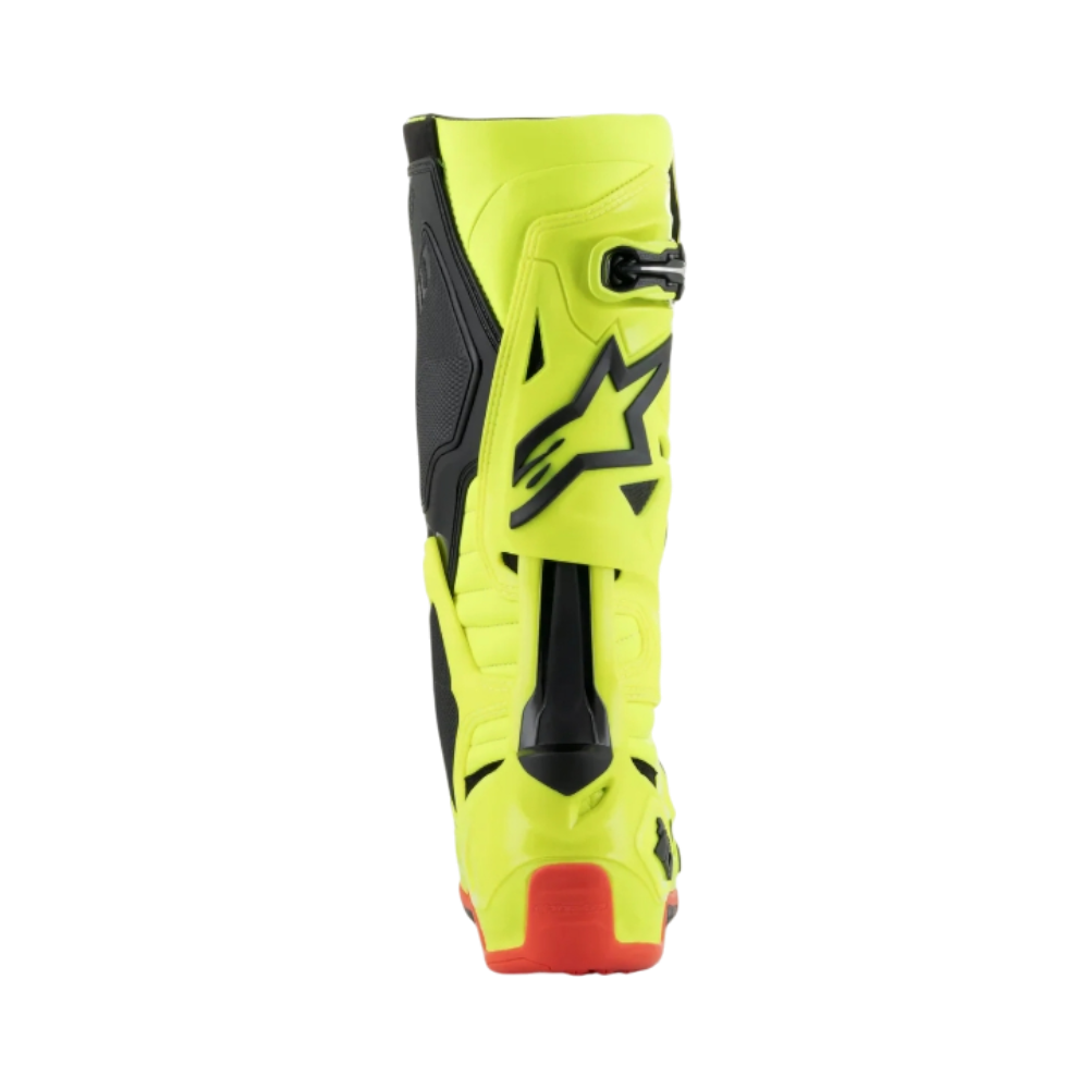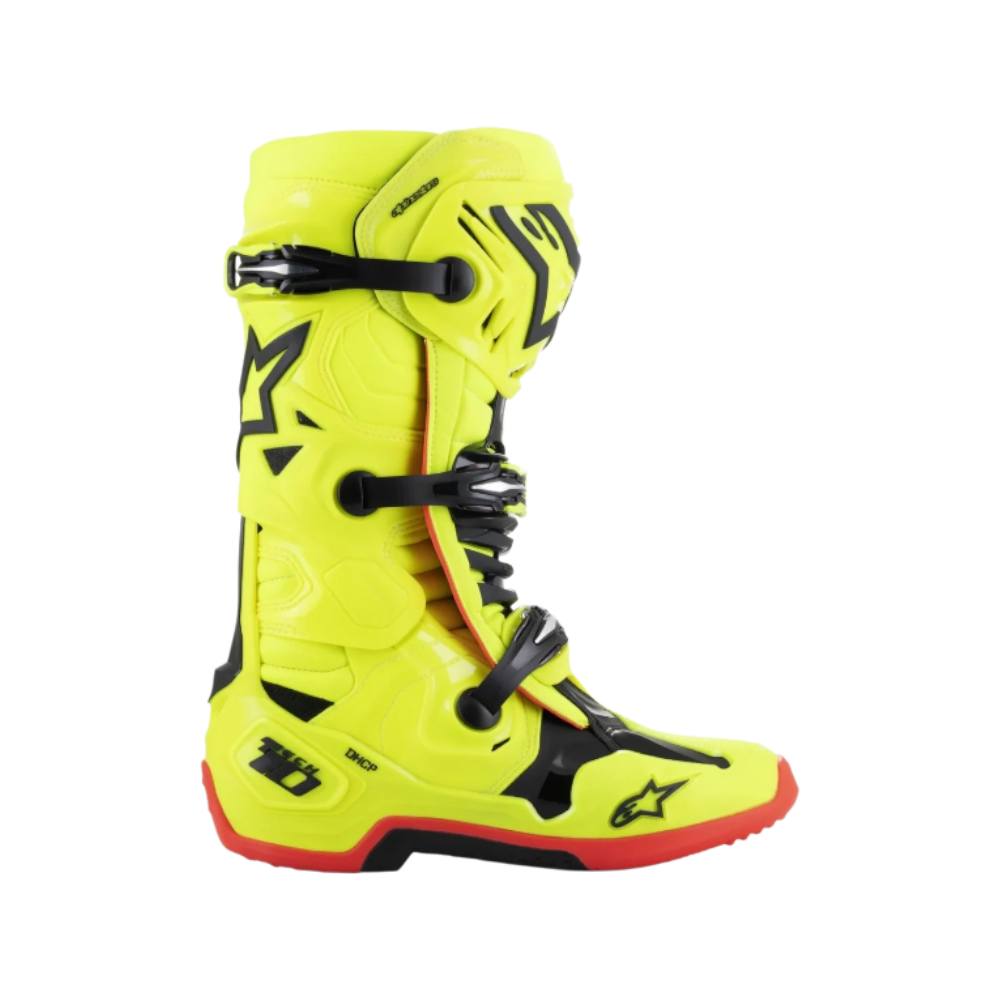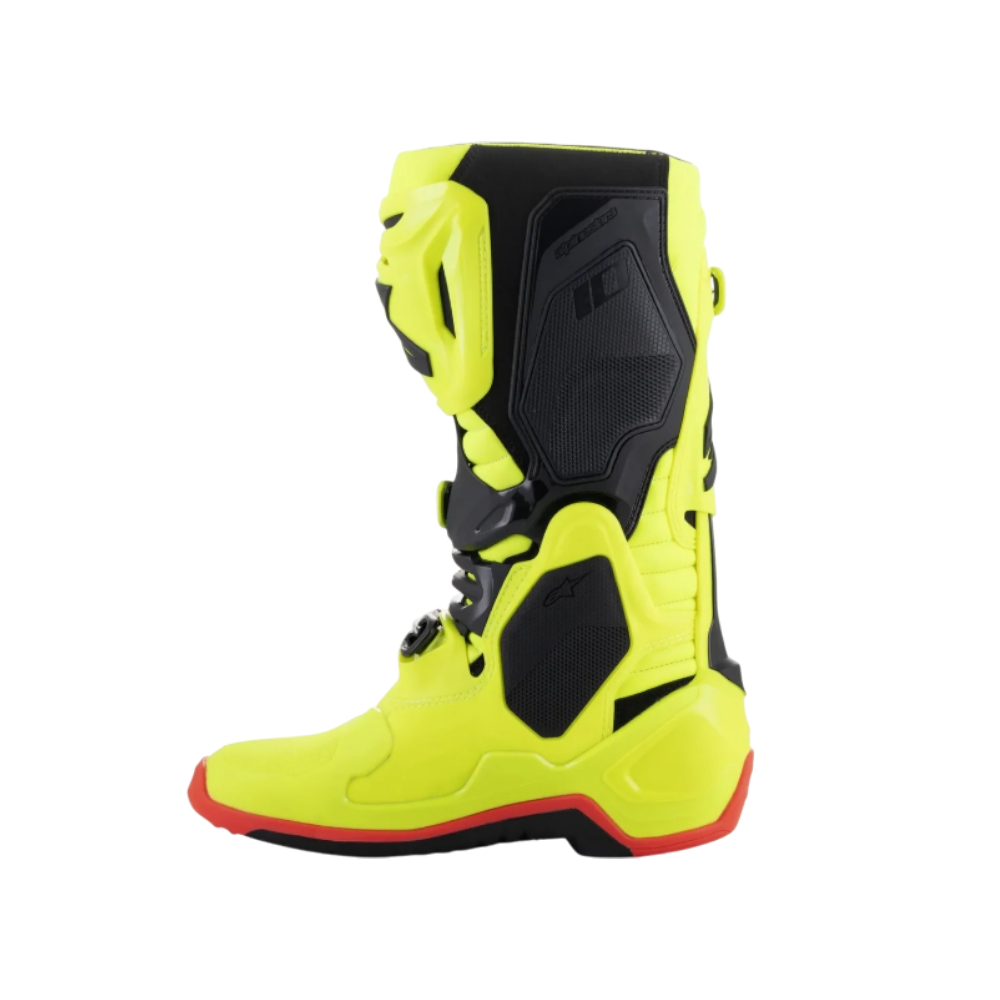 El desarrollo continuo de la Tech 10 se ha guiado por tres prioridades clave: el equipo técnico de calzado de Alpinestars buscaba mejorar la funcionalidad, el rendimiento y la seguridad, reducir el peso y el volumen del material de la bota. Maximizar estas prioridades es el logro clave de la nueva Tech 10, y el resultado es una mayor amplitud de movimiento y flexibilidad, a la vez que ofrece un mejor control de las fuerzas de flexión y torsión, lo que mejora significativamente el rendimiento de la bota y brinda al piloto mayor confianza y protección.