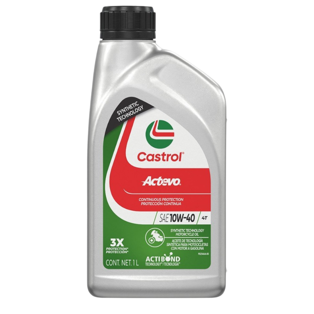 Dale a tu motocicleta la protección que necesita con el Castrol Actevo Part Synthetic 10W-40 4T, un lubricante semi sintético de alto rendimiento diseñado para motores de 4 tiempos. Gracias a su exclusiva tecnología Actibond™, este aceite se adhiere a las superficies internas del motor, formando una capa protectora que permanece incluso cuando la moto está apagada.